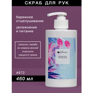 • Скраб для рук обладает очень приятным цветочно-фруктовым ароматом на основе Escada Pacific Paradisе. Гранулы скраба состоят из измельчённой скорлупы Королевского грецкого ореха. Скраб бережно отшелушивает ороговевшие клетки, увлажняет, питает, омолаживает кожу. Содержит комплекс растительных углеводов, способных связывать и удерживать влагу в коже в течение длительного времени. Успокаивает кожу. Способ нанесения: Массирующими движениями нанести небольшое количество скраба на кожу рук, ног и тела. Крем-скраб хорошо впитывается в кожу. Остатки абразива смыть водой или удалить сухой салфеткой, а крем продолжит увлажнять кожу.